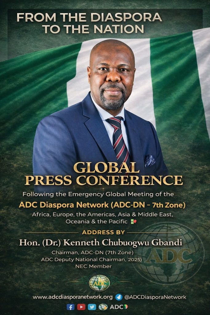 In the words of Hon Kenneth Gbandi: “The press conference will present the ADC-DN’s position on leadership, legitimacy, and the future of democratic credibility in Nigeria. Major diaspora and Nigeria-based media outlets are expected to join the live broadcast”.