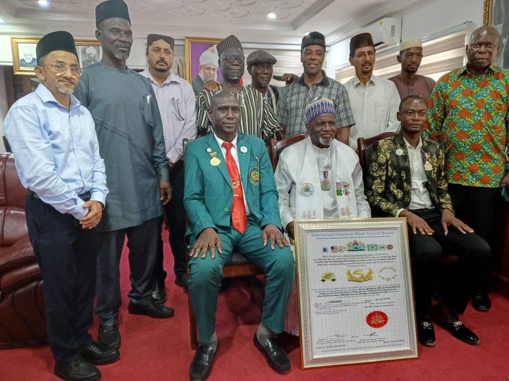 In the words of the VC, CUICI, USA and World Grand President, International Chartered World Learned Society (ICWLS): “I congratulate my brother and friend, the National Leader (Amir) Ahmadiyya Muslim Community in Ghana to have accepted this global honors, Awards from ICWLS. Infact, this global recognition accorded him is based on merit. Global leaders insignia of the awards included certificates, , a muffler, a Global Golden medal, a Frame and other instruments of the Society which were presented in recognition of ‘the avocation, enthusiasm and reputation’ of the honouree”.