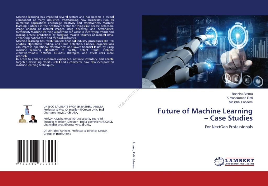 UNESCO Laureate and Crown University’s VC when asked to summarize the content of the book as co-authored by him and other world renowned IT Professors stated, “the book ‘Future of Machine Learning-Case Studies for Next Generation of Professionals’, has to do with machine learning as it has impacted several sectors and has become a crucial component of many industries, transforming how businesses run”.